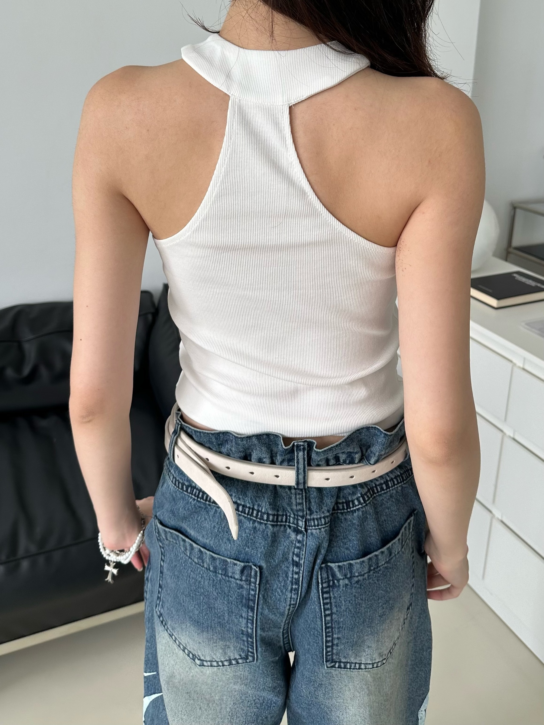 現+預|3色/小眾設計綁帶工字背心 短版版型 螺紋彈力面料